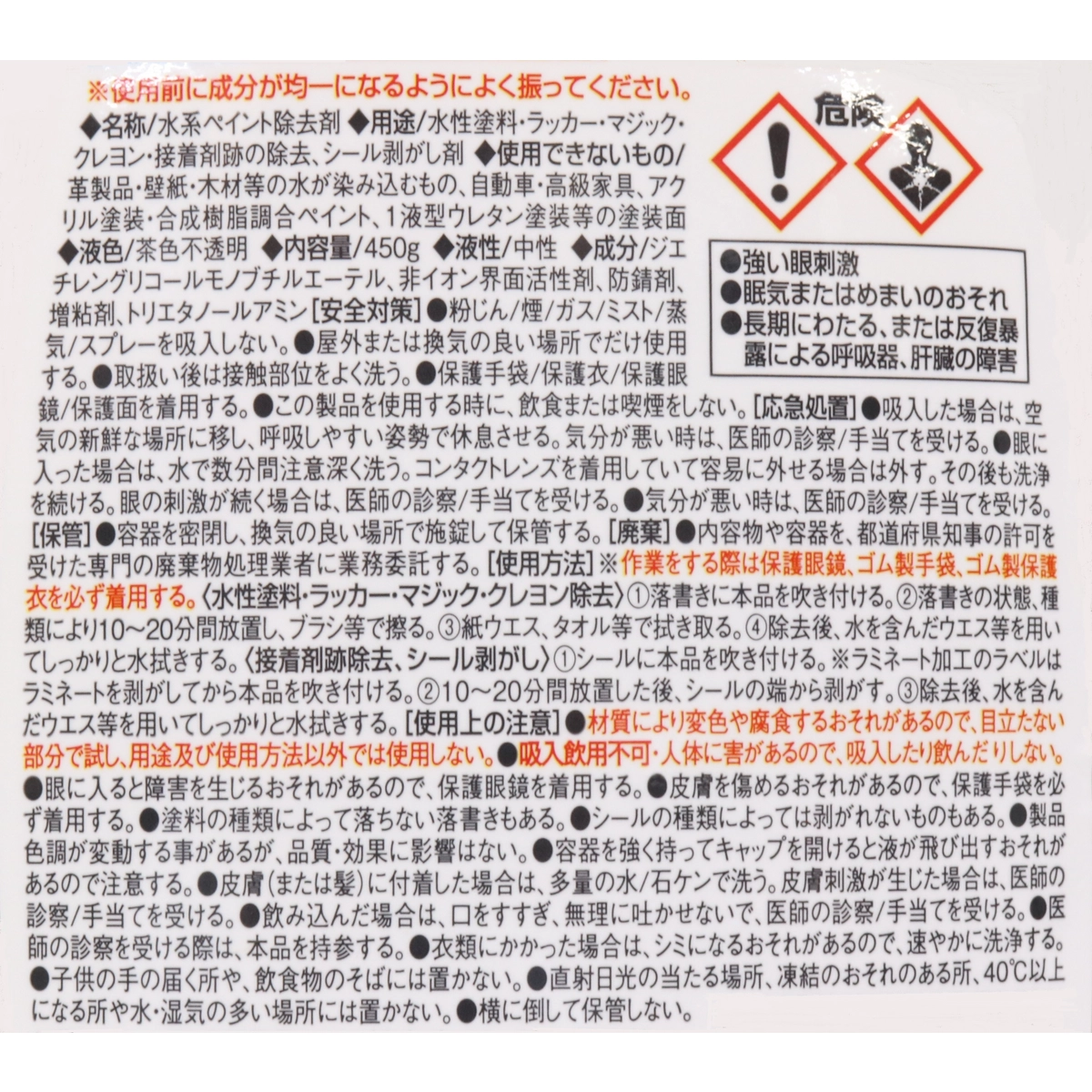 ●用途:水性塗料・ラッカー・マジック・クレヨンなど常温乾燥1液タイプの塗料の除去