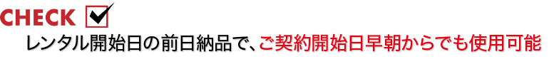 レンタル開始日の前日納品で、ご契約開始日早朝からでも使用可能